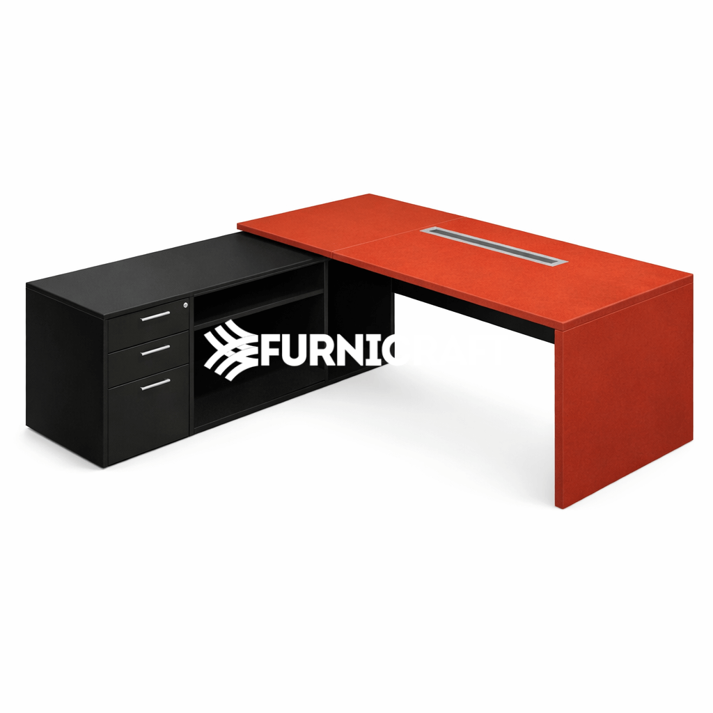 Upgrade your workspace with the Manager Desk from Furnicraft featuring built-in storage drawers. This Manager Desk blends modern style and sturdy design to support productivity in both office and home workspaces.